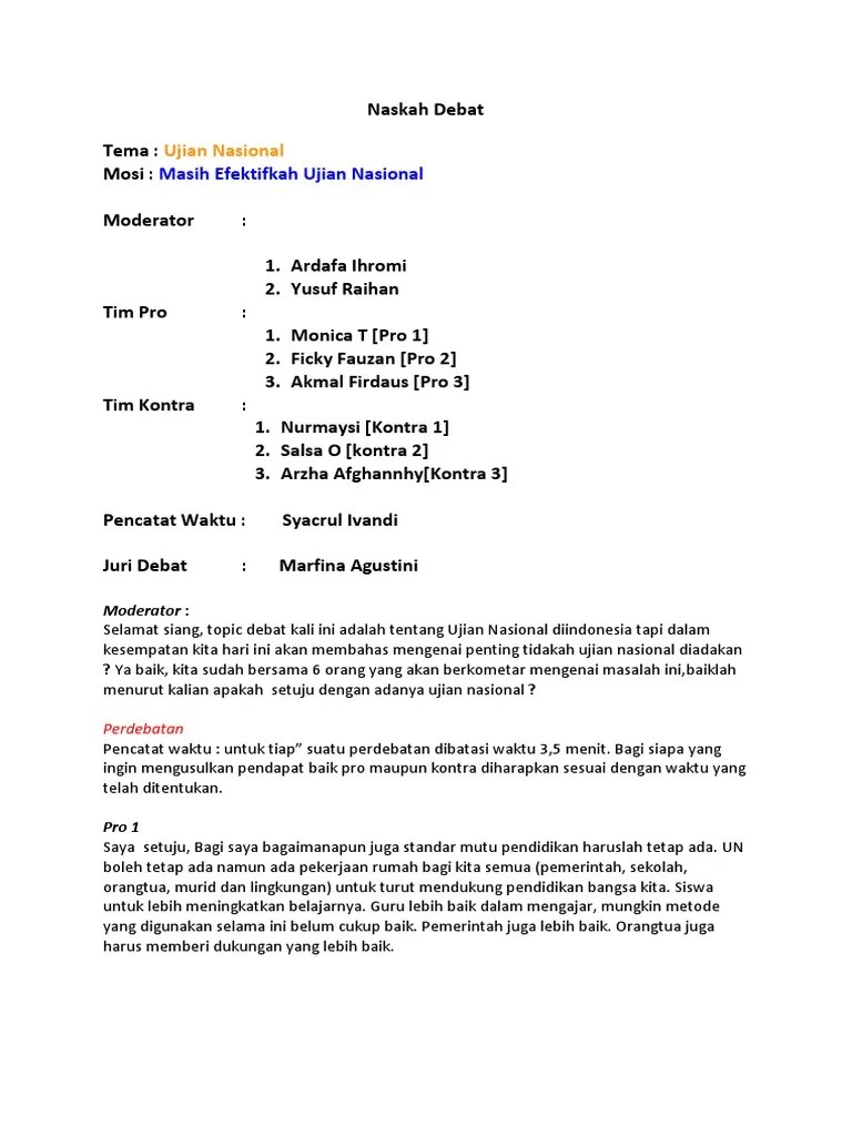 Ketua tim _nama perguruan tinggi_3 kata pertama judul essay, contoh: . Jika anda sudah duduk di kelas 10, atau kelas satu sekolah menengah atas, mungkin anda . Teks debat terdapat dalam pelajaran bahasa indonesia. Teks moderator debat bahasa inggris. Mosi debat bahasa inggris (prepared).